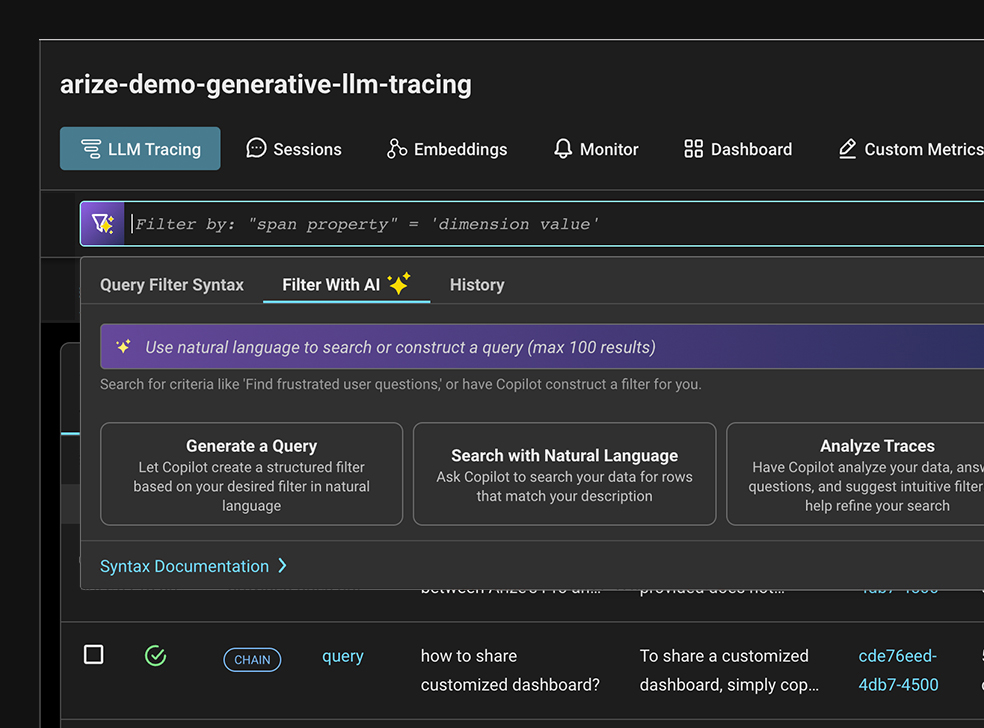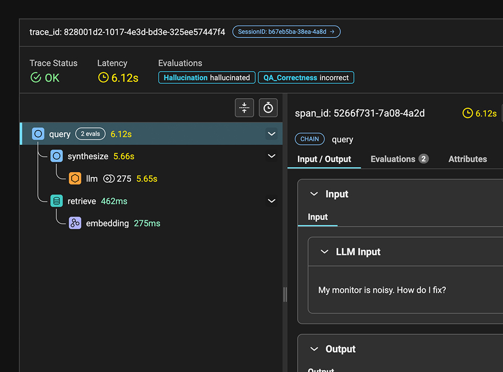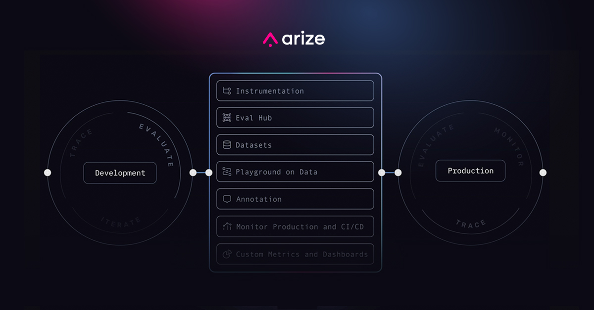 바로 이 부분에서 Arize의 통합 AI 옵저버빌리티(Observability) 및 평가(Evaluation) 플랫폼이 등장합니다. AI 엔지니어를 위해 특별히 제작된 Arize는 모든 AI 모델 유형에 걸쳐 엔드-투-엔드 관찰, 평가 및 문제 해결 기능을 제공합니다. Arize는 개발과 운영을 단일 피드백 루프로 연결하여 AI 엔지니어가 더 빠르게 반복하고 자신 있게 AI 애플리케이션을 배포할 수 있도록 보장합니다.