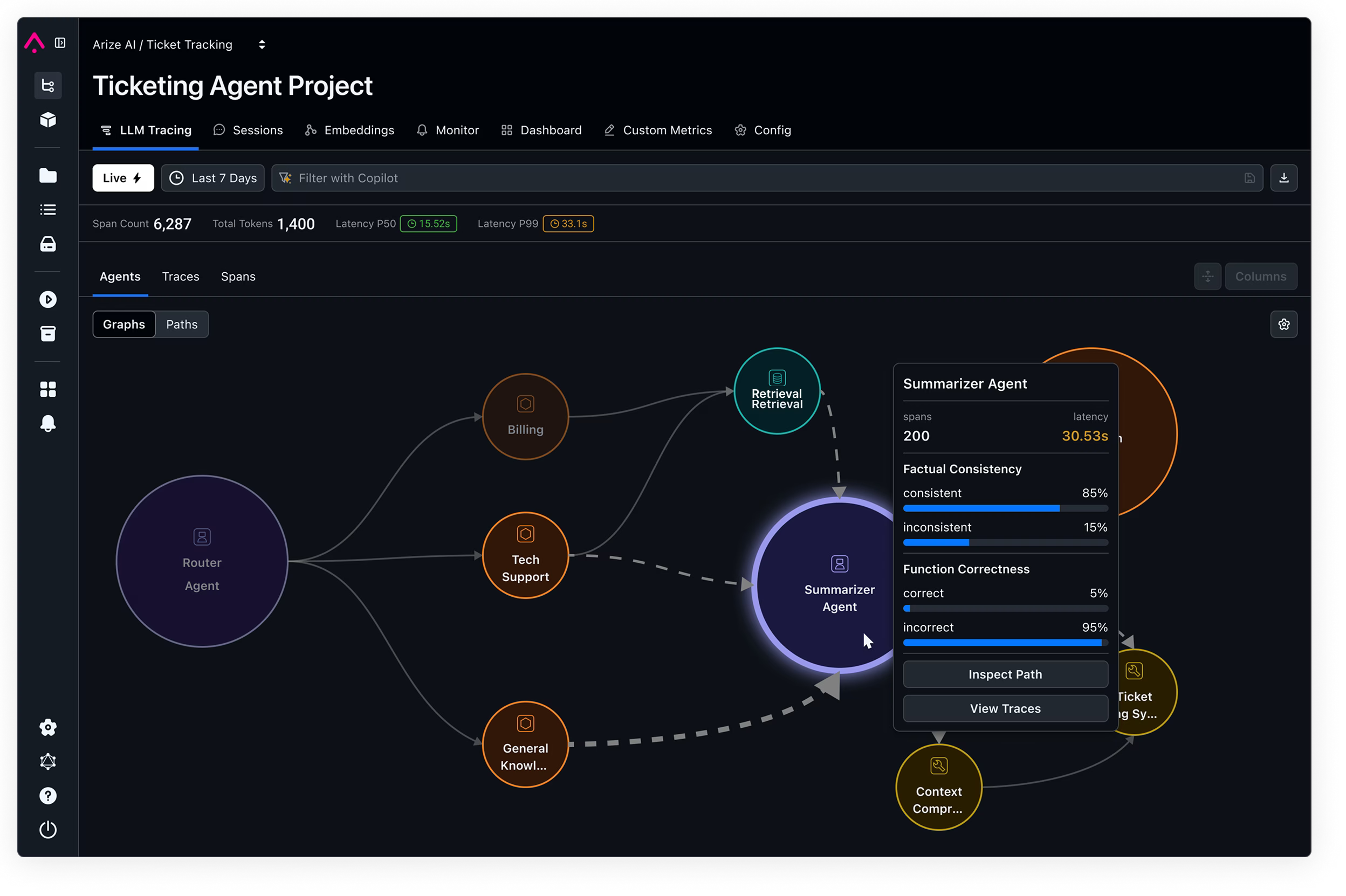 생성 기반 애플리케이션을 통해 데이터 흐름을 시각화하고 디버깅하세요. LLM 호출의 병목 현상을 신속하게 파악하고, 에이전트 경로를 이해하며, AI가 예상대로 작동하는지 확인하세요.