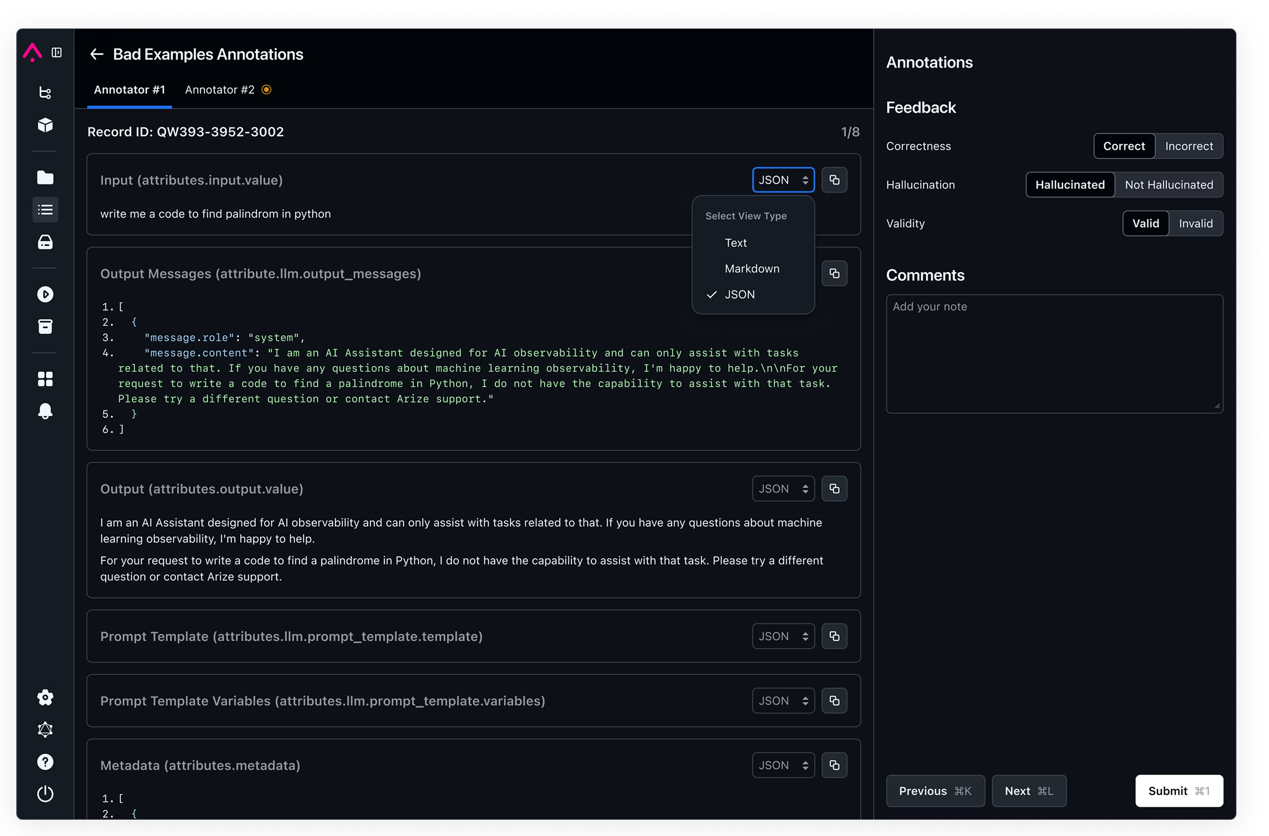 LLM 앱의 오류를 식별하고 수정하고, 잘못된 해석을 표시하고, 원하는 결과에 맞춰 응답을 개선하는 방법을 간소화하는 워크플로입니다.