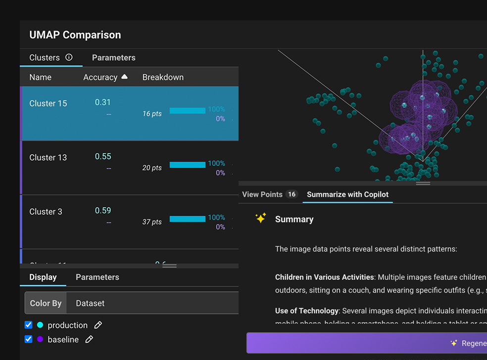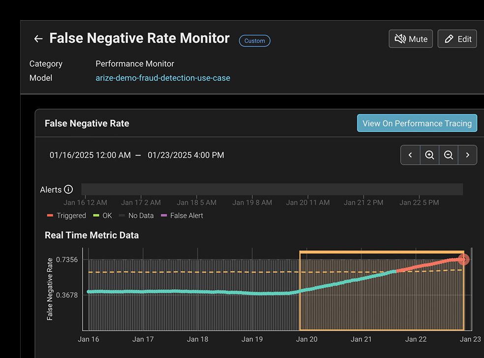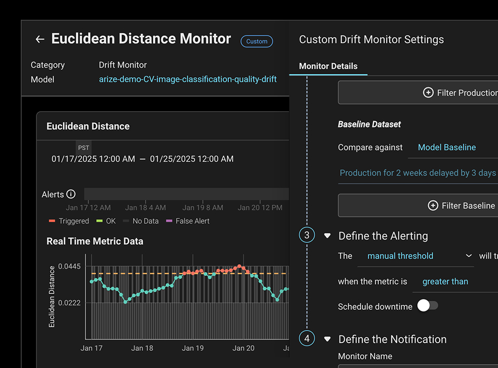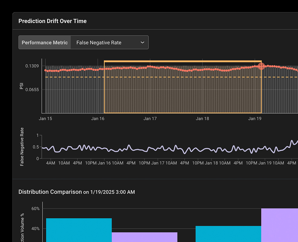 자동화된 모델 모니터링과 동적 대시보드를 통해 근본 원인 분석 워크플로를 신속하게 시작할 수 있습니다.