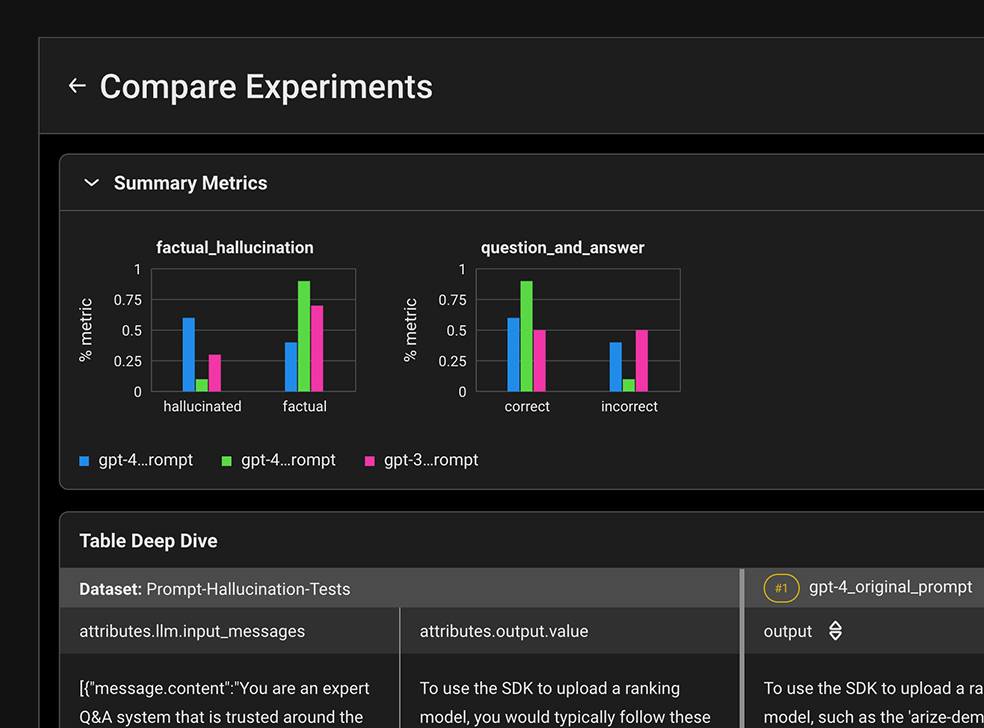 LLM 프롬프트에 대한 변경 사항을 테스트하고 다양한 데이터 세트에 대한 성능에 대한 실시간 피드백을 확인하세요.